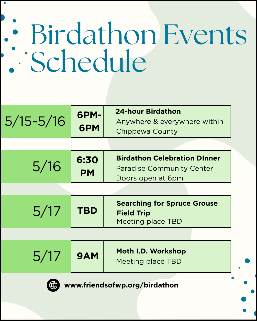 Birdathon Participants View fullsize Birdathon Rules Birdathon FAQ Sample Fundraising Letter Free ticket to visit owl banding