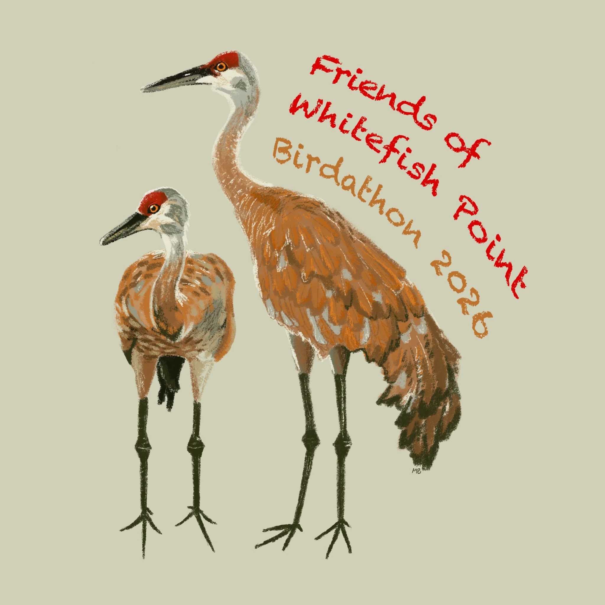 "I am part of a large family that has been living and vacationing in Whitefish Point for 4 generations; as a landscape artist my work is strongly tied to places that are meaningful to me and as a result I have done many paintings focused on Whitefish Point, Paradise, and Lake Superior as a way to celebrate my connection with the region. As a primarily watercolor and acrylic artist, this sandhill crane illustration was a very fun exercise in digital art that allowed me to feature my favorite bird while experimenting with the texture of colored pencil illustration." You can visit Marissa’s website here and she will be at the Paradise Blueberry Festival this summer.