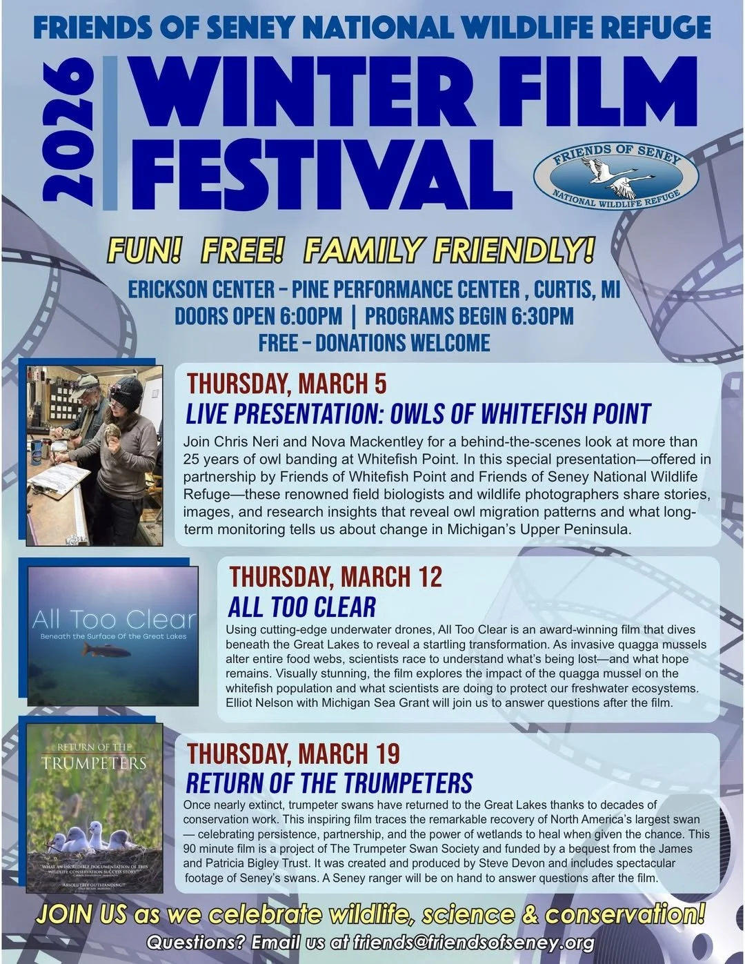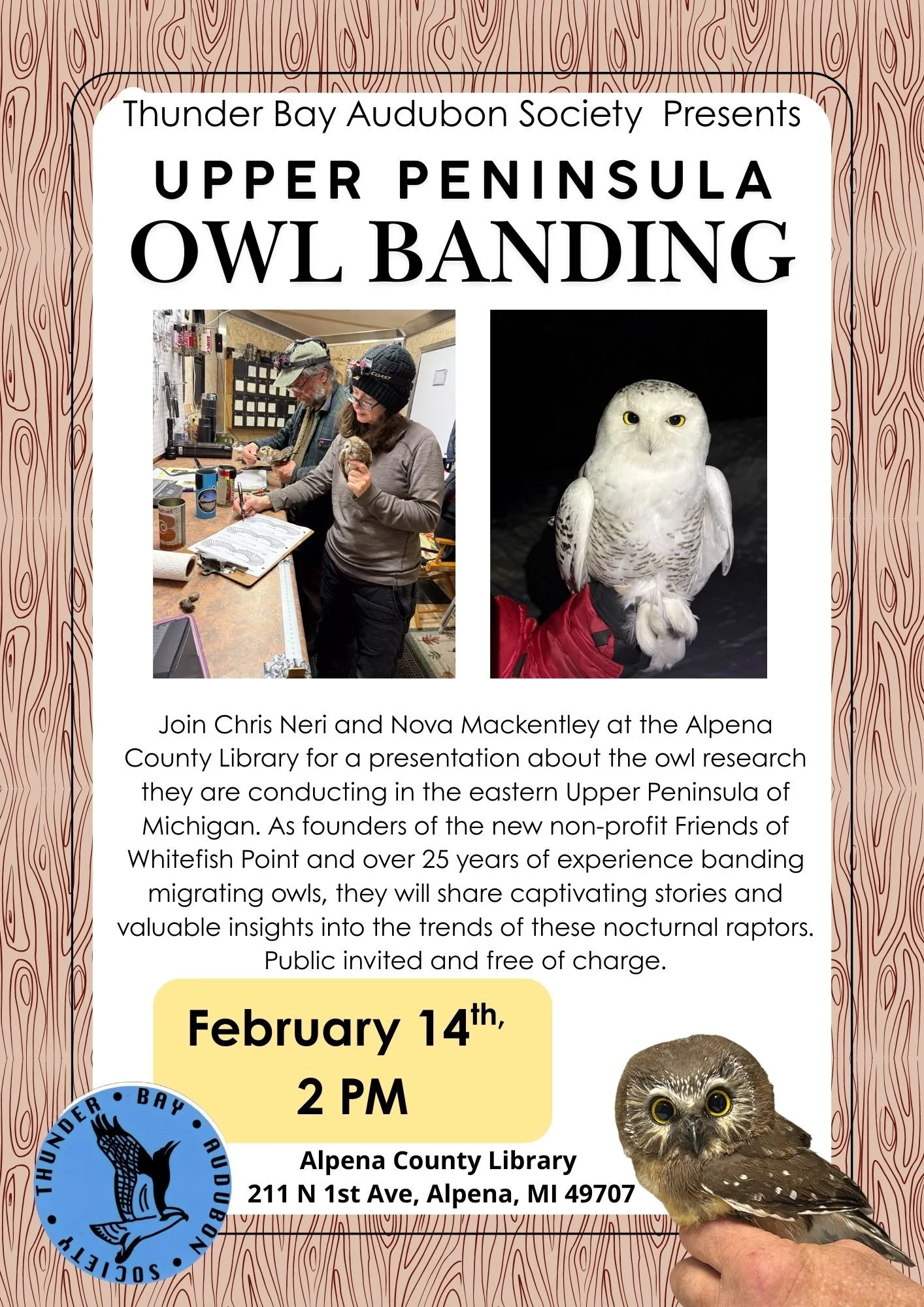 We are right in the middle of a real winter up here at Whitefish Point. 2026 has been very cold, very snowy, and very gray. January was long, but now February is here and we finally have a little sun and warmth! Spring banding begins in just about one month, which is hard to believe. In the meantime, we have some events and announcements to share with you all to help lighten the winter gloom.